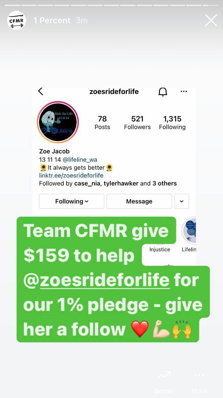 “At CrossFit Margaret River we believe the greatest health crisis we are currently facing is the spread of mental illness. Giving away 1% of our gross for mental health initiatives is another way we are trying to respond to this crisis.”